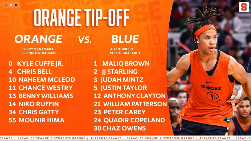 Another note on the blue team was how well Quadir Copeland played. He led the scrimmage in scoring and was all over the place on defense. Copeland brought the energy that we saw at times last season and proved to be someone who can be a consistent contributor to the Orange. One other note on team blue, the freshman William Patterson struggled a lot, especially with finishing. There were a couple of times where Patterson made a nice move to get an open look then just missed an easy layup.