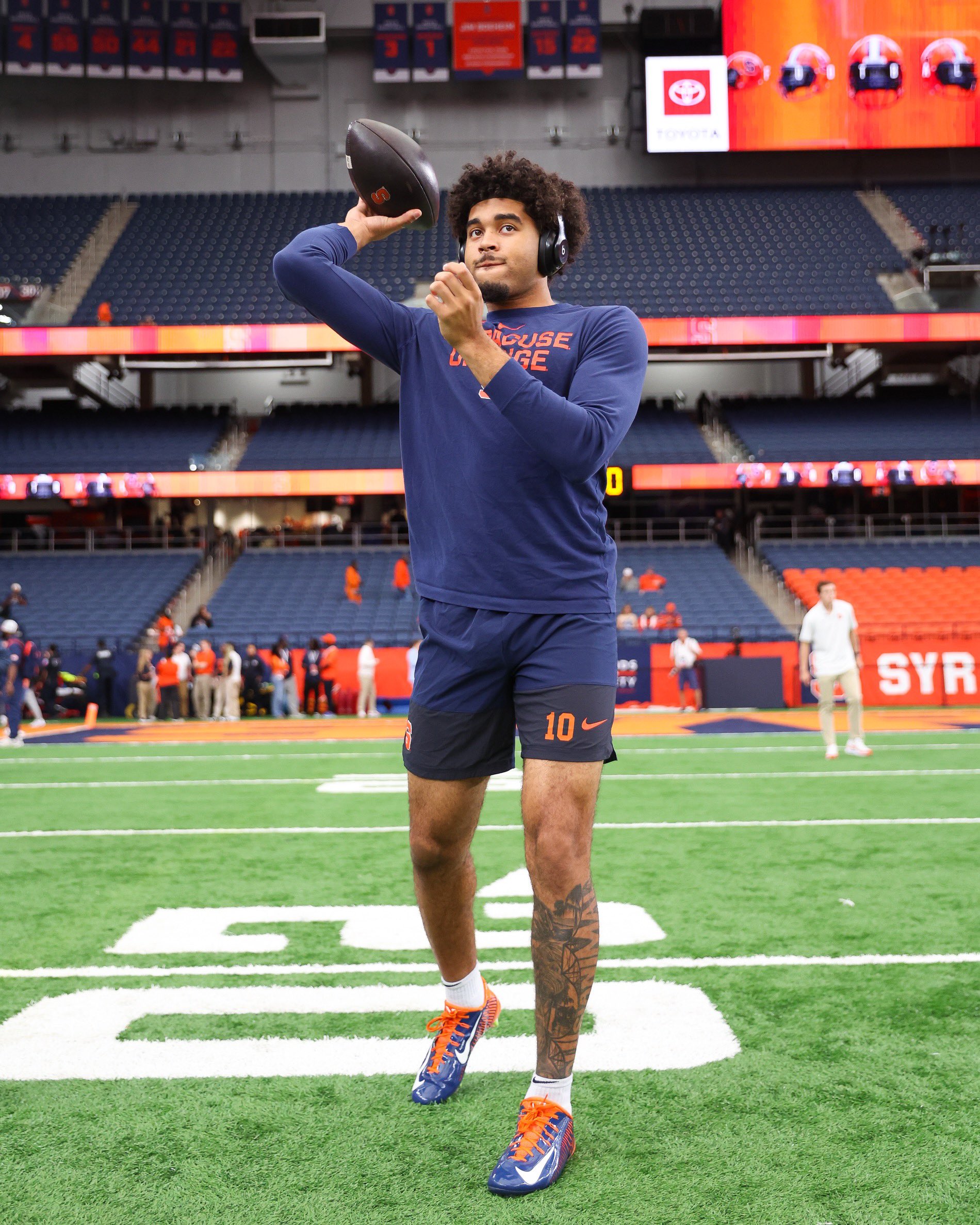 Collins started strong, connecting on tight throws, but then threw an interception in SU’s first drive.