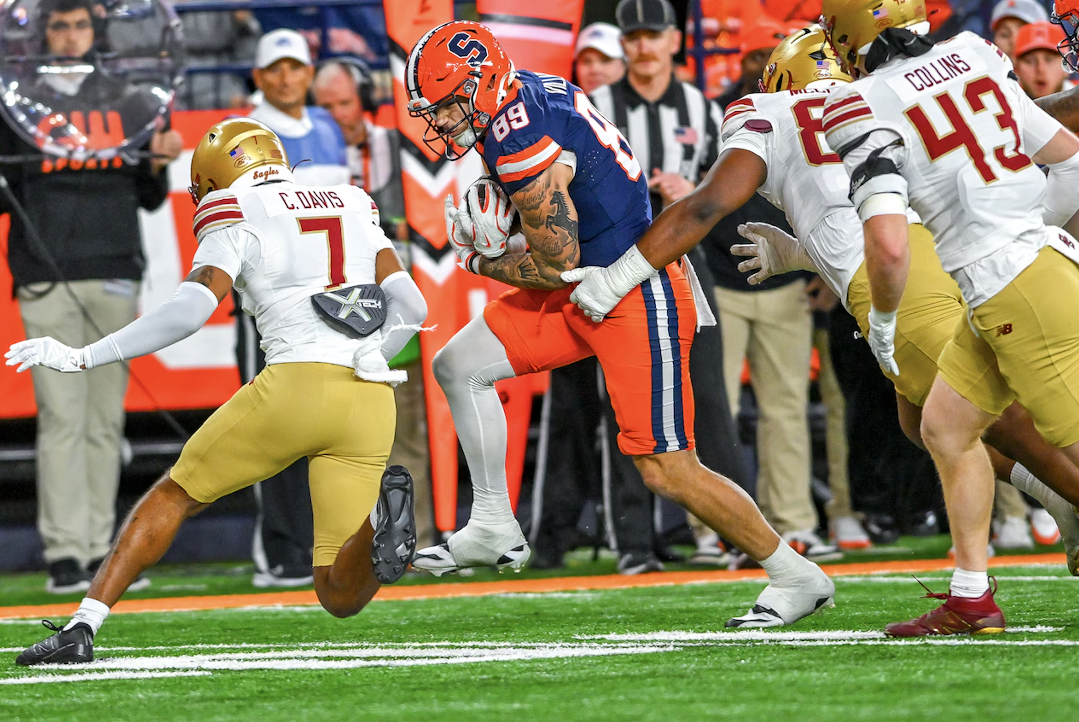 Filardi started three games for the Orange, but he didn’t fare much better. The freshman walk-on produced 226 passing yards and two total touchdowns with just a 47.7% completion rate. All three of his interceptions came in Syracuse’s historic 70-7 blowout loss to Notre Dame, with the Fighting Irish returning two of them for pick-sixes.